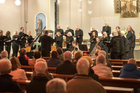 Unter der Gesamtleitung von Kantor Andreas Pumpa präsentierten die knapp 50 Chormitglieder gemeinsam mit dem Orchester, einem „Collegium Musicum”, und vier Solisten die erste bis dritte sowie die